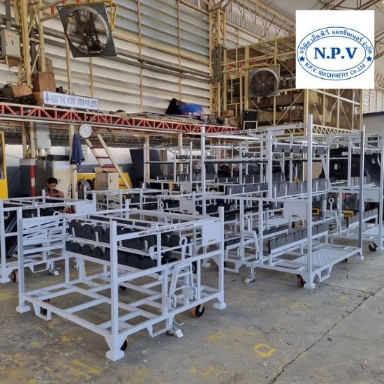 รับผลิต Stackable steel rack เพื่อใช้วางชิ้นงานในไลน์การผลิต ไลน์ประกอบรถยนต์ In-process rack & dolly